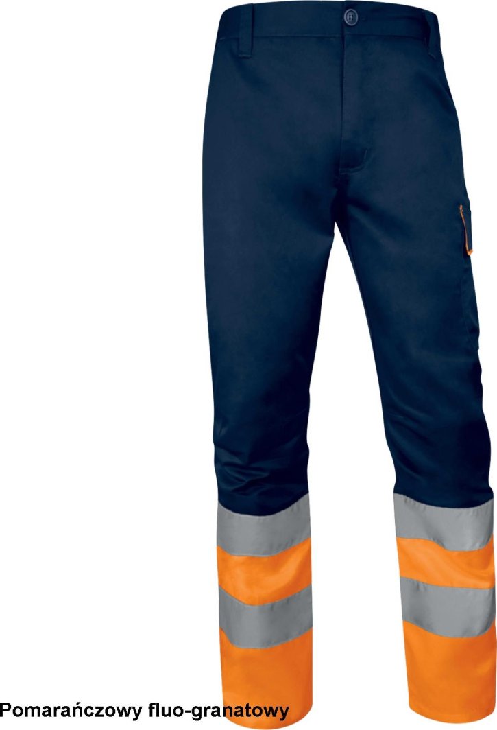 Spodnie z wieloma kieszeniami h.v klasy 1 zapewniają dobrą widoczność w warunkach słabego oświetlenia i w niebezpiecznych środowiskach.Krój : Regularny | Materiał : Serża 80% Poliester 20% Bawełna 240 g/m² | Szwy : Potrójne szwy | Rozmiar : Boki elastyczne | Kolana wstępnie uformowane | Liczba kieszeni : 4