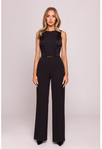 M866 Kombinezon z koronkowymi wstawkami - czarny (kolor czarny, rozmiar M)