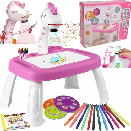 KREATYWNY MAŁY STOŁEK JEDNOROŻEC Z PROJEKTOREM DO MALOWANIA + AKCESORIA