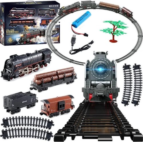 Zestaw z pociągiem B/O, 48 elementów. Funkcje: jazda do przodu, jazda do tyłu, światło i dźwięk, efekt dymu.