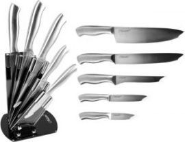 Zestaw noży Maestro MR-1410, 6 elementówzestaw noży w bloku; materiał wykonania: stal nierdzewna + akryl ilość elementów w komplecie: 6 szt.; blok na noże z akrylu nóż szefa kuchni 8” (20 cm); nóż do trybowania 6” (15 cm) nóż uniwersalny 8” (20 cm); nóż uniwersalny 5” (12 cm) nóż do obierania 3,5” (8 cm); polerowana powierzchnia ostrza stal nierdzewna wysokiej jakości; idealne wyważenie nóżki antypoślizgowe bloku; noże można myć w zmywarce przechowywanie w bloku zapobiega przed stępieniem i uszkodzeniem ostrza EAN: 4820096557457 Kod Producenta: MR-1410 Kolor: Srebrny Czarny Miejsce serwisowania: Incom Group SA Okres rękojmi w miesiącach: 24 Waga (kg): 1.750 Wymiary [G x S x W] (mm): 360 x 170 x 130