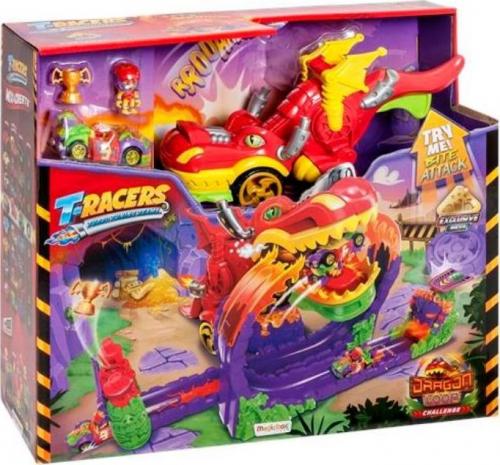 Naciśnij przycisk wyrzutni z odpowiednią siłą, aby Tiki Twist (czyli ekskluzywny T-Racer dostępny tylko w tym zestawie) ominął potężnego smoka, wykonał pełną pętlę ("loop") i zdobył puchar! Ale jeśli źle ocenisz siłę nacisku... Smok również ma swoje metody na ściganie intruzów. Przekształca się w pojazd na kółkach i otwiera paszczę, by spróbować Cię schwytać! Udowodnij, że jesteś najodważniejszym i najlepszym T-Racerem na Dragon Loop!