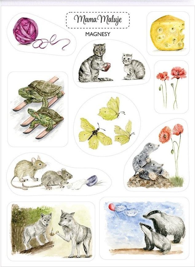 W zestawie znajdziesz wizerunki uroczych postaci, takich jak tulące się wiewiórki czy całujące w nos hipopotamy. Te piękne ilustracje nie tylko przyciągają wzrok, ale również zachęcają dzieci do kreatywnej zabawy i wymyślania własnych opowieści. Magnesy te stanowią doskonały sposób na rozwijanie wyobraźni oraz umiejętności narracyjnych u najmłodszych.