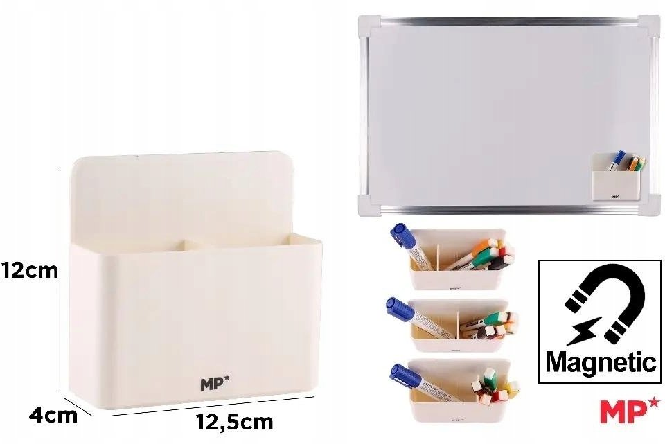 Produkt od MP Main Paper wyróżnia się znakomitą jakością wykonania, co zapewnia jego długotrwałe użytkowanie. Magnetyczny pojemnik na markery jest nie tylko estetyczny, ale także niezwykle praktyczny. Dzięki zastosowaniu magnesu, można go łatwo przymocować do tablicy, co eliminuje problem z zagubionymi markerami.