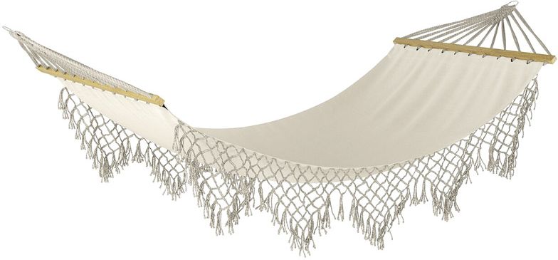 Materiał hamaka ogrodowego wykonany jest z wysokiej jakości bawełny, która jest przyjemna dla ciała.
