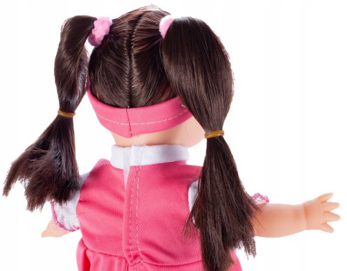 Włosy laleczki można uczesać według własnego uznania. Gdy położysz laleczkę zamkną jej się oczka. Z pewnością ucieszy każdą małą dziewczynkę.