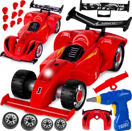 Rozkręcany samochód to idealna zabawka dla małych majsterkowiczów. W skład zestawu wchodzi mnóstwo części, m.in. koła, spojler, śruby.