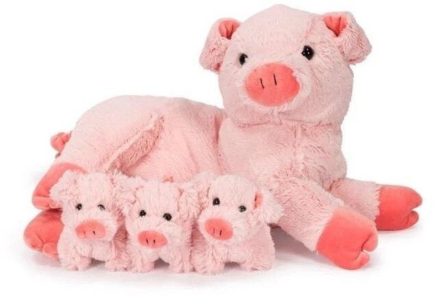 Urocza mama świnka marki Cozy Noxxiez zachwyca miękkością i pokaźnymi rozmiarami. Ma długość ok. 50 cm. Szerokość brzuszka - ok. 15 cm. Wykonana z wysokiej jakości pluszu kotka ma brzuszek otwierany na zamek błyskawiczny. W nim mieszczą się 3 małe świnki o długości ok. 18 cm. W zestawie także do złożenia samodzielnego: tekturowy, kolorowy domek w formie otwartego pudełeczka.