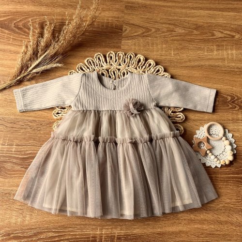 Mamatti Sukienka dziecięca długi rękaw tiul beżowa