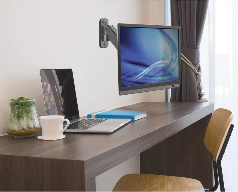 Uchwyt ścienny Manhattan oferuje ramię sprężyny gazowej z jednym przegubem do bezpiecznego mocowania jednego telewizora lub monitora o przekątnej od 17 do 32 cali. Sprężyna gazowa tego uchwytu ułatwia przesuwanie monitora lub telewizora do wygodniejszego kąta widzenia. Uchwyt ścienny Manhattan zapewnia większą elastyczność, zasięg i ogólną przyjemność z każdego zadania.