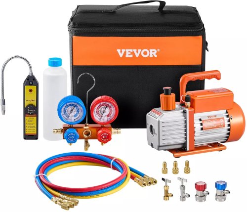 Zestaw pompy próżniowej i manometru kolektora 4,5 CFM pozwala dokładnie zmierzyć ciśnienie w układzie i serwisować system HVAC z pewnością siebie. Jest kompatybilny z wieloma czynnikami chłodniczymi, takimi jak R410A, R404, R407C, R134a, R22, R12 i R502.