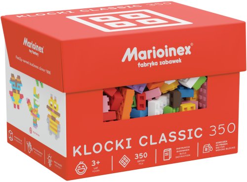 Klocki Marioinex są zaprojektowane tak, aby były jak najbardziej przyjazne i bezpieczne dla dzieci. Są wykonane z elastycznego, miękkiego i przyjemnego w dotyku materiału. Ich kształt został idealnie dopasowany do kształtu i wielkości dziecięcych dłoni, a zastosowane barwy są łagodne i przyjemne dla oka. Uzyskały nagrody w takich konkursach jak „Zabawka Roku” czy „Świat Przyjazny Dziecku”. Zestawy Marioinex Zestawy klocków z linii Marioinex można kolekcjonować i komponować z nich również budowle własnego pomysłu.