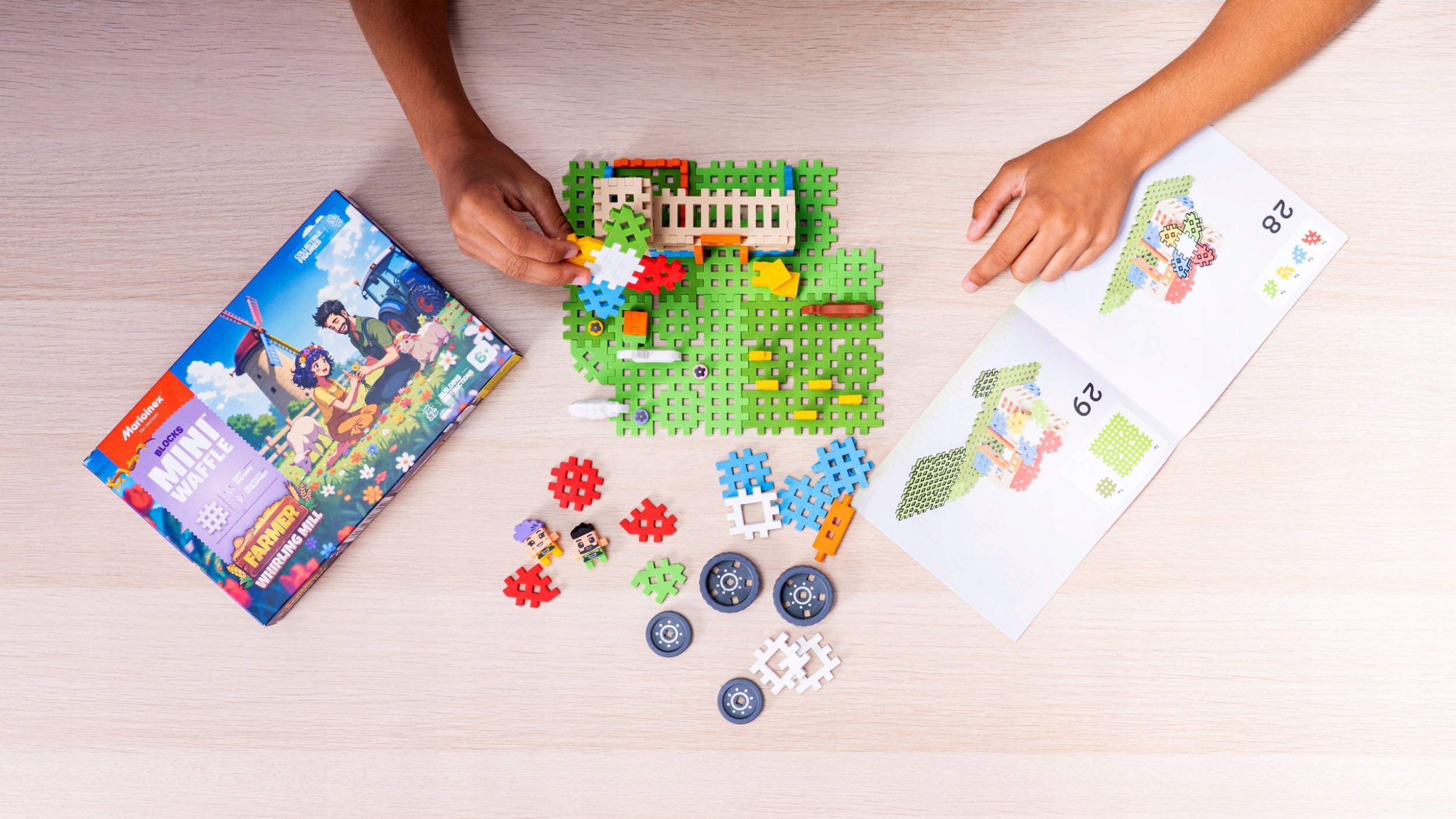 Klocki Waffle mini Farmer - Zakręcony młyn to znakomity zestaw konstrukcyjny, który zapewni Twojemu dziecku wiele godzin twórczej zabawy. Składający się z 100 elementów, jest idealny dla dzieci w wieku 6 lat i starszych, które chcą rozwijać swoje zdolności manualne oraz wyobraźnię. Dzięki różnorodnym klockom, maluchy mogą budować własne konstrukcje, co sprzyja ich rozwojowi i nauce poprzez zabawę.