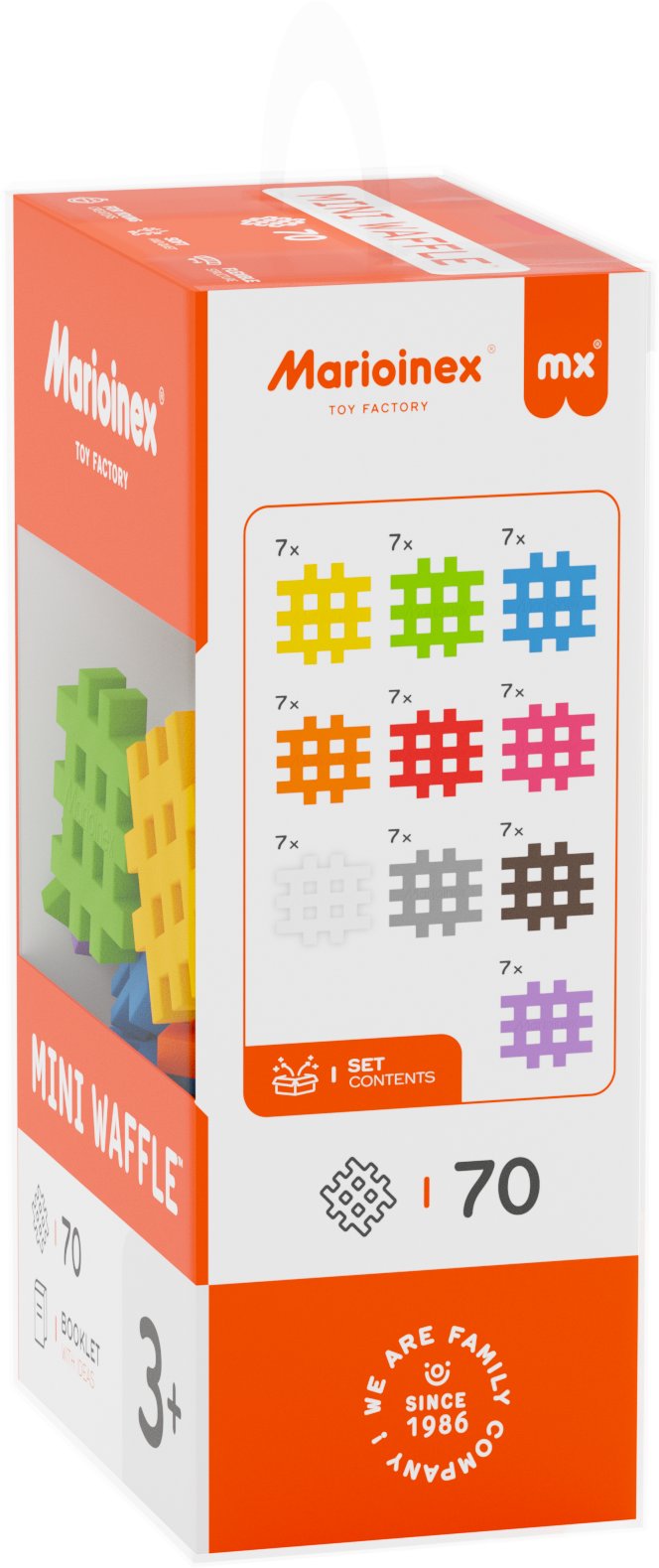 Klocki Marioinex są zaprojektowane tak, aby były jak najbardziej przyjazne i bezpieczne dla dzieci. Są wykonane z elastycznego, miękkiego i przyjemnego w dotyku materiału. Ich kształt został idealnie dopasowany do kształtu i wielkości dziecięcych dłoni, a zastosowane barwy są łagodne i przyjemne dla oka. Zestawy Marioinex Zestawy klocków z linii Marioinex można kolekcjonować i komponować z nich również budowle własnego pomysłu.
