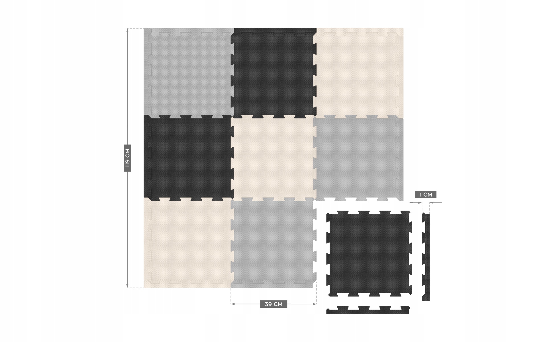 Puzzle z miękkiej i sprężystej pianki zapewniają odpowiednią amortyzację podczas ewentualnych upadków i dobrze izolują od zimnej podłogi. Dzięki temu Twój maluch może komfortowo bawić się na każdego typu podłodze - panelach, parkiecie, płytkach lub dywanie.