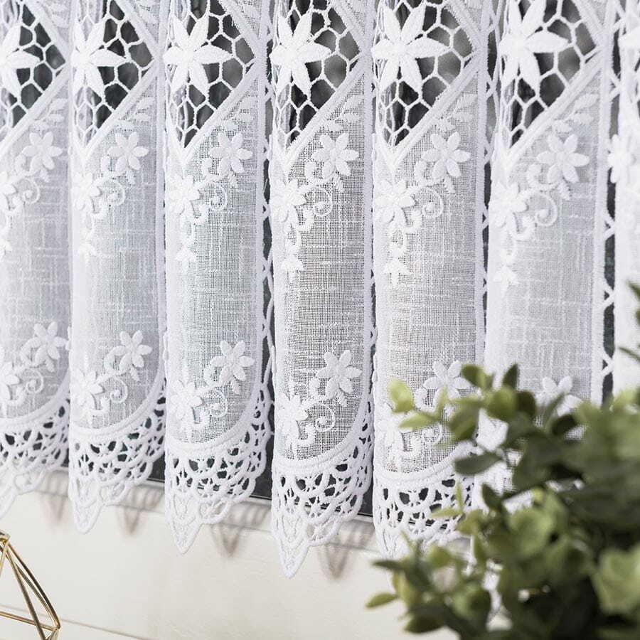 Markizeta Zazdrostka 015590 - gipiura + materiał z haftem 60cm BIAŁA