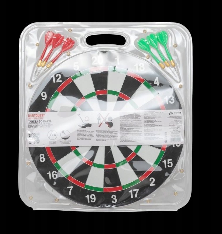 W zestawie z tarczą DARTQUEST znajdują się darty, które składają się z piłek z PE, trzonu z PE, beczki z żelaza oraz grotu ze stali. Taki zestaw zapewnia doskonałą jakość rzutów i sprawia, że gra staje się jeszcze bardziej ekscytująca. Dzięki sześciu dartom, można grać w większym gronie, co dodatkowo podnosi poziom rywalizacji i zabawy.