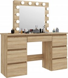 Toaletka kosmetyczna BETA 4 12 LED w kolorze sonoma to nowoczesny mebel, który harmonijnie łączy funkcjonalność z estetyką. Stworzona z myślą o kobietach pragnących zaaranżować wygodny kącik do makijażu w sypialni lub garderobie, a także jako element wyposażenia profesjonalnych salonów kosmetycznych. Dzięki większym wymiarom i pojemności w porównaniu do wcześniejszego modelu, ta toaletka z pewnością zaspokoi potrzeby nawet najbardziej wymagających użytkowników.