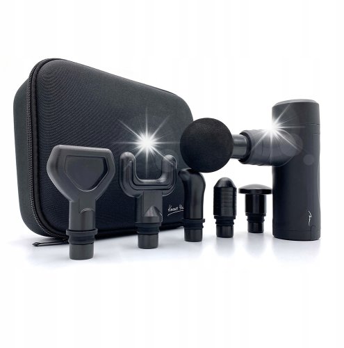 W zestawie z masażerem znajduje się 6 różnych głowic masujących, w tym sprężysta kulka, trzpień, podwójny trzpień, płaski, łopatka oraz kciuk. Dzięki temu możesz dostosować intensywność masażu do swoich indywidualnych potrzeb, co zwiększa wszechstronność urządzenia i pozwala na skuteczne rozluźnienie różnych grup mięśniowych.