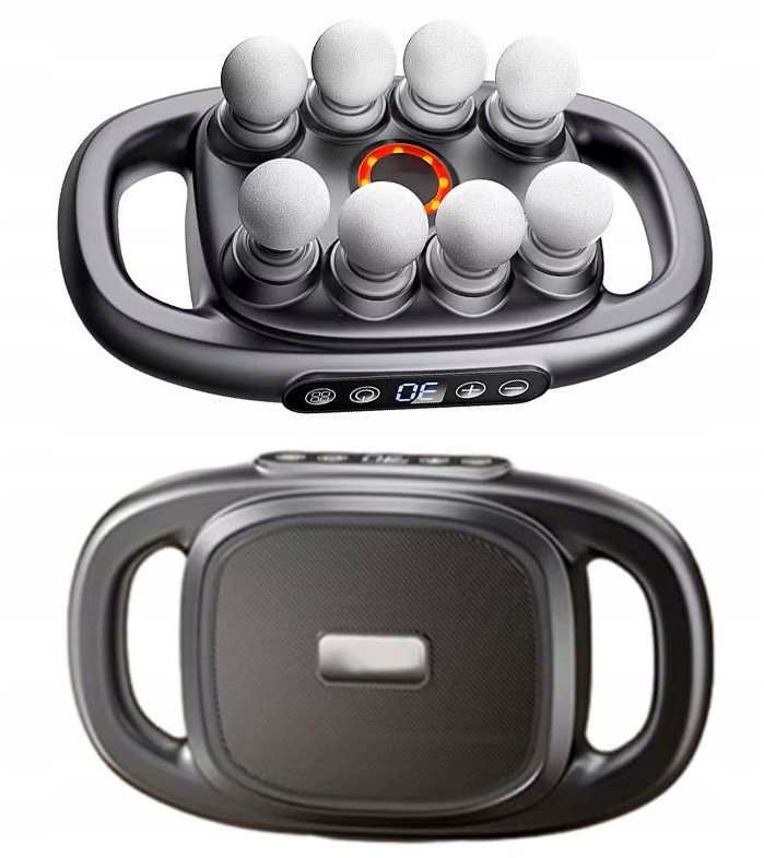 Urządzenie wyposażone jest w intuicyjny panel sterujący z wyświetlaczem LCD, co ułatwia jego obsługę. Masażer ładowany jest za pomocą nowoczesnego złącza USB-C, co zapewnia szybkie i wygodne ładowanie.