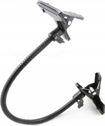 Elastyczne ramię o długości 50 cm oraz klipsy o szerokości 8 cm zapewniają stabilne mocowanie na płaszczyznach i profilach o grubości do 4,5 cm. Dzięki gumowym nasadkom na końcach klipsów, uchwyt gwarantuje pewne trzymanie, a mocna sprężyna w klipsach zapewnia dodatkową stabilność. Część elastyczna pokryta jest silikonową warstwą ochronną, co zwiększa jej trwałość i odporność na uszkodzenia.