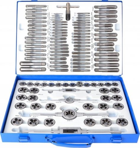 Profesjonalne gwintowniki i narzynki wykonane z doskonałego materiału. Zestaw zawiera 110 elementów. Zapakowany w wygodną walizkę, która pozawala utrzymać porządek, łatwo transportować zestaw i błyskawicznie odnaleźć potrzebny w danej chwili element.