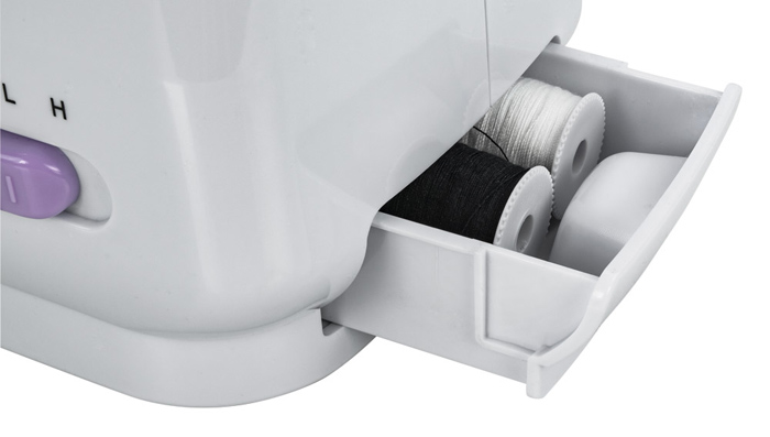 ✅ wbudowany obcinacz do nitek i szufladka na akcesoria