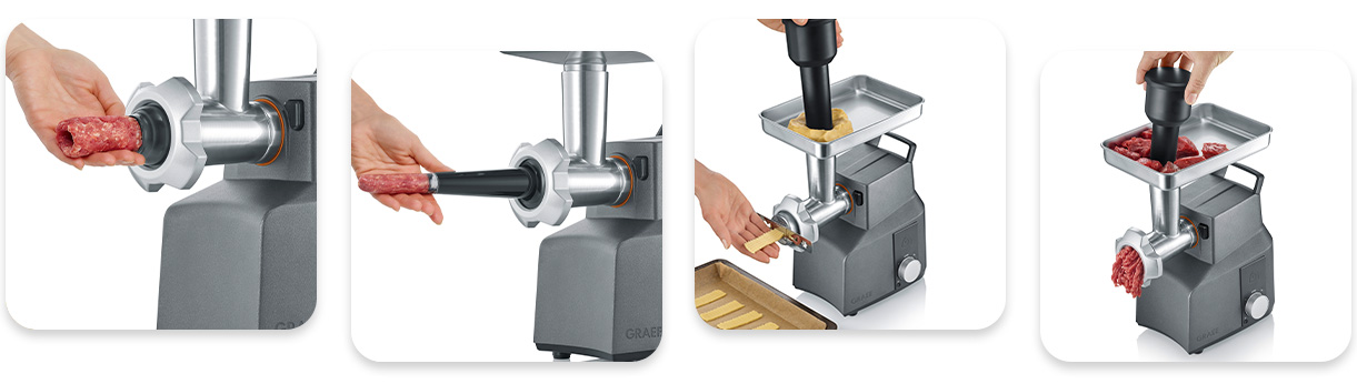 Wilk do mięsa Graef FW 706 to nie tylko wydajne urządzenie, ale również kompleksowe rozwiązanie, które oferuje szereg praktycznych dodatków, pozwalających na jeszcze szersze zastosowanie w kuchni. Każdy z elementów w zestawie ma swoją funkcję i umożliwia przygotowanie różnorodnych dań. Poniżej przedstawiamy, jak dodatki w zestawie mogą wzbogacić Twoje kulinarne doświadczenia: