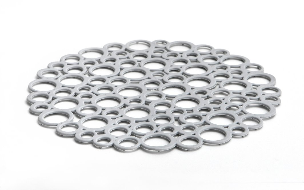 Kratka do zlewu kuchennego chroni delikatne naczynia przed uszkodzeniem podczas zmywania. Wykonana z miękkiego tworzywa sztucznego, ma wzór w bąbelki.