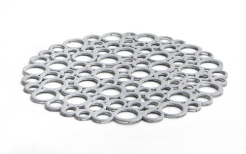 Okrągła mata do zlewu w kolorze szarym.