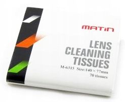 Bibułki czyszczące firmy MATIN są najwyższej jakości, niezwykle delikatne i jednocześnie bardzo chłonne. Umożliwiają usunięcie nawet najdrobniejszych zanieczyszczeń z każdego rodzaju szkieł optycznych. Nie rysują i nie niszczą powłok, są w 100% bezpieczne dla Państwa optyki.
