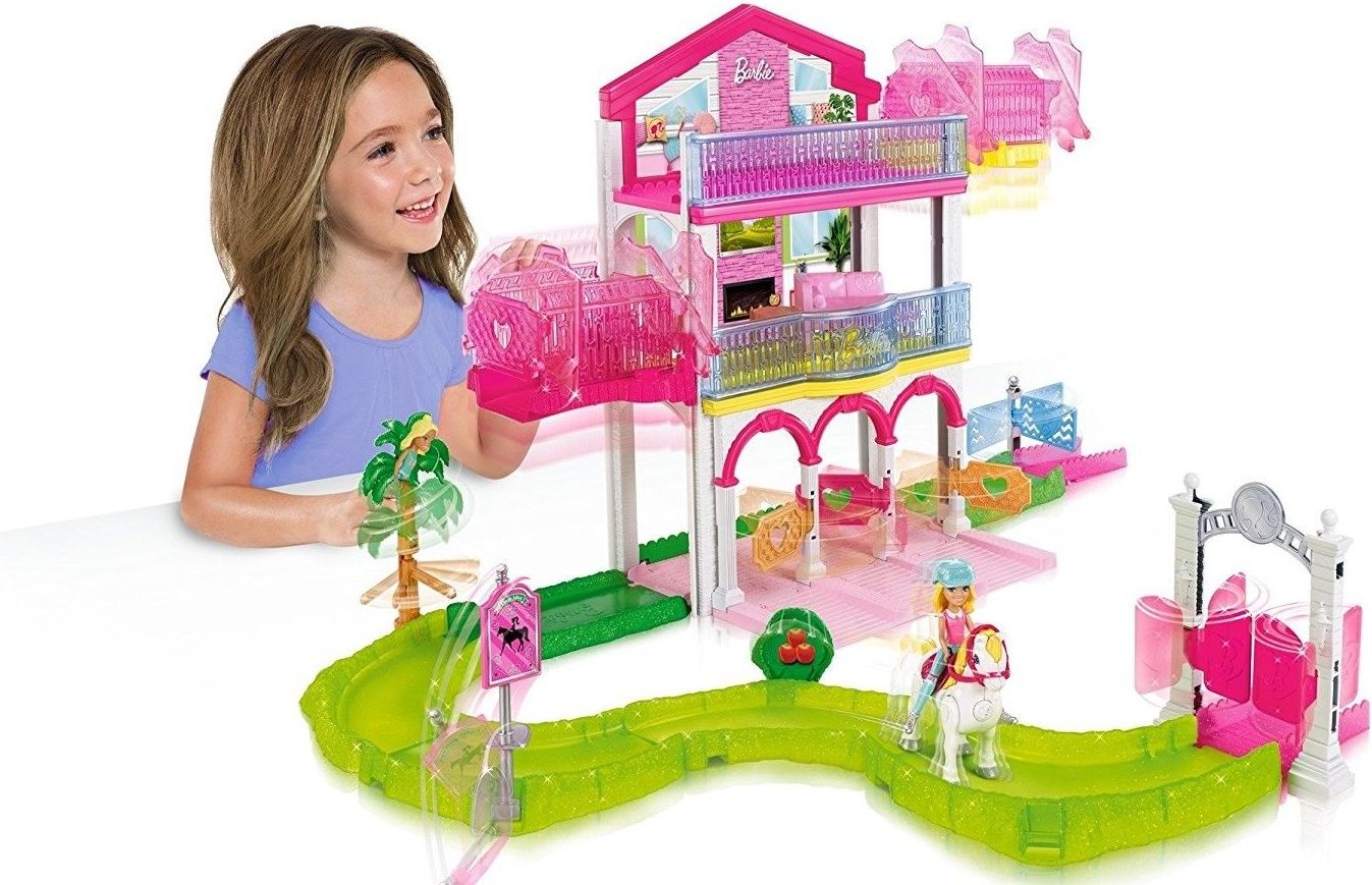 Stajnia ma trzy poziomy i dwie działające windy - jedna jest uruchamiana do góry, podczas gdy druga zjeżdża w dół. Kolorowa stajnia ma trzy boksy z wahadłowymi drzwiami. Na drugim poziomie znajduje się salon z kanapą, a na trzecim - taras na dachu.
