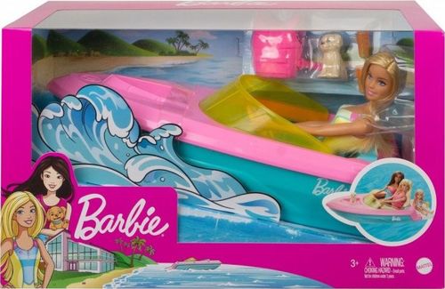 Z motorówką Barbie, która unosi się na wodzie, oraz lalką Barbie i szczeniaczkiem możesz tworzyć niesamowite morskie opowieści! Wyjątkowe funkcje, kolorowy wygląd i miejsce na trzy lalki Barbie (inne lalki sprzedawane oddzielnie) sprawiają, że ta łódka to idealny sposób na przeżywanie niezwykłych przygód. Załóż lalce Barbie różową kamizelkę ratunkową i suń przez fale. Potem zatrzymaj motorówkę, aby odpocząć na pokładzie z kubkami napoju. Dzieci w wieku od 3 do 7 lat mogą wypłynąć tą motorówką Barbie na wodę podczas kąpieli i wyobrażać sobie, jak prują fale oceanu. Możliwości zabawy są nieskończone, bo z Barbie możesz być, kim chcesz! Lalka nie stoi i nie pływa samodzielnie. Kolory i elementy dekoracyjne mogą się różnić. Wymagany nadzór osoby dorosłej.