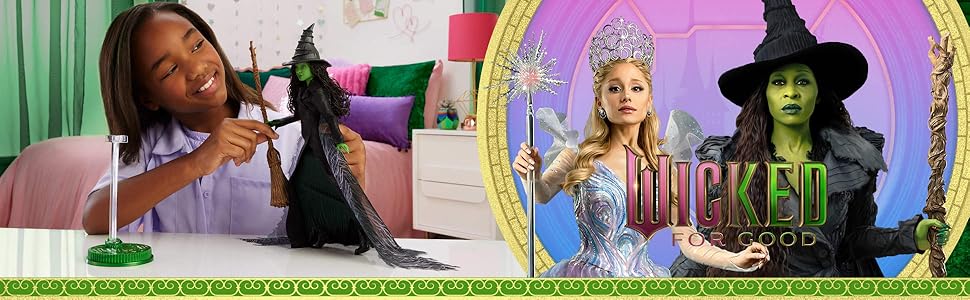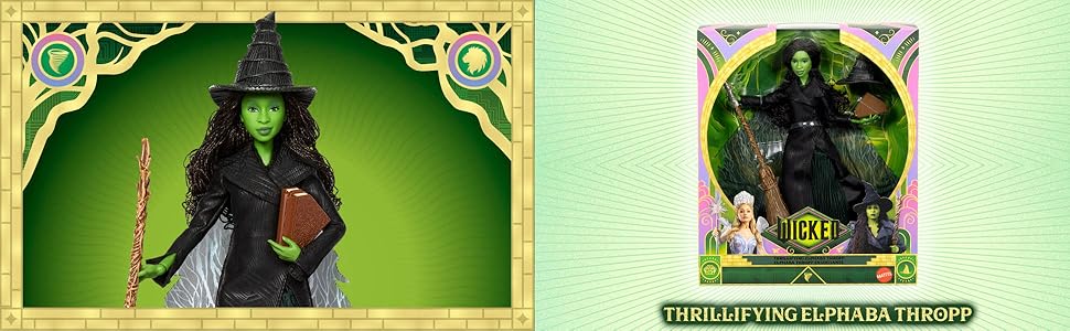 Czas „poszybować” z niezwykłą lalką modową Elfabą z filmu „Wicked: For Good” wytwórni Universal Pictures! Podobnie jak w filmie ta lalka Elfaba wygląda zachwycająco w sukni z fakturowanymi, błyszczącymi detalami i postrzępionej pelerynie. Jej miotła, kapelusz, księga zaklęć i buty doskonale pasują do zdejmowanego stroju. Fantastyczną stylizację dopełniają długie włosy zaplecione w warkocz. Lalka nie stoi samodzielnie. Kolory i elementy dekoracyjne mogą się różnić.