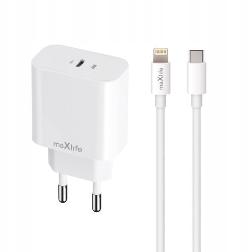 Maxlife ładowarka sieciowa PD QC MXTC-06-20C 1x USB-C 20W biała + kabel USB-C - Lightning 20W