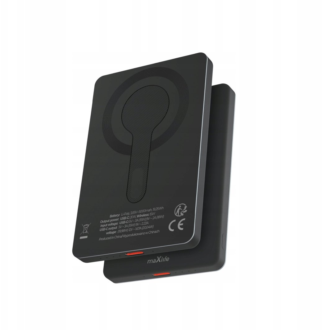 Dzięki magnetycznemu mocowaniu MagSafe, powerbank Maxlife MXPB-05 doskonale pasuje do iPhone'ów oraz innych urządzeń obsługujących standard Qi. To innowacyjne rozwiązanie zapewnia wygodę i stabilność podczas ładowania.