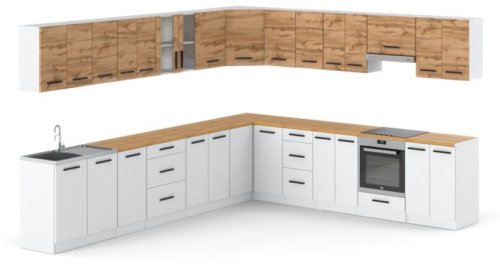 Meble Kuchenne Białe Z Drewnem Narożna Kuchnia Rossa 6.8m Dąb Wotan Biała