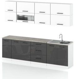 Meble kuchenne modułowe Robo Lux to doskonałe połączenie nowoczesnego stylu i praktyczności, które idealnie wkomponuje się w każdą kuchnię. Zestaw o długości 2.6m w eleganckim szarym i białym połysku nadaje wnętrzu wyjątkowy charakter, harmonizując zarówno z nowoczesnymi, jak i klasycznymi aranżacjami. Dzięki solidnej konstrukcji oraz estetycznemu wykończeniu, kuchnia Robo Lux stanie się prawdziwym sercem Twojego domu.
