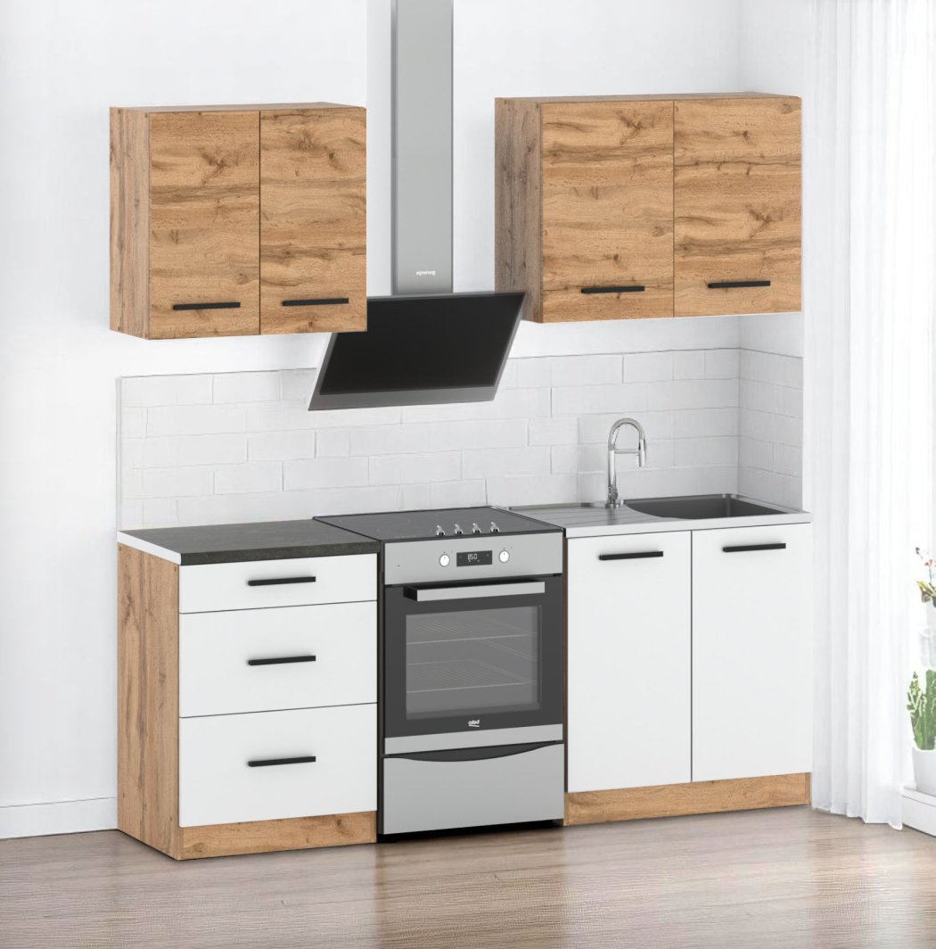 Meble kuchenne modułowe małe z blatem pojemne 2m wotan dąb wotan biały mat to doskonały wybór dla tych, którzy pragną połączyć styl z funkcjonalnością w swojej kuchni. Dzięki nowoczesnemu wzornictwu oraz przemyślanej konstrukcji, ten zestaw idealnie wkomponuje się w każdą przestrzeń, oferując jednocześnie sporo miejsca na przechowywanie.