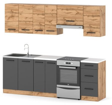 Meble Kuchenne Mokka 2.4m Komplet Modułowy Nowoczesny Szary Dąb Wotan