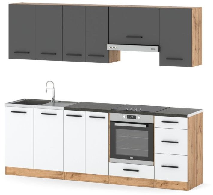 Meble Kuchenne Mokka Plus 2.4m Zestaw Modułowy Z Blatem Wotan Biały Szary