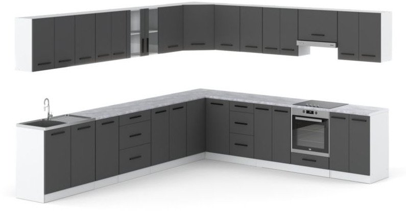 Meble Kuchenne Szare Mat Narożne Nowoczesne Kuchnia Rossa 6.8m Modułowy