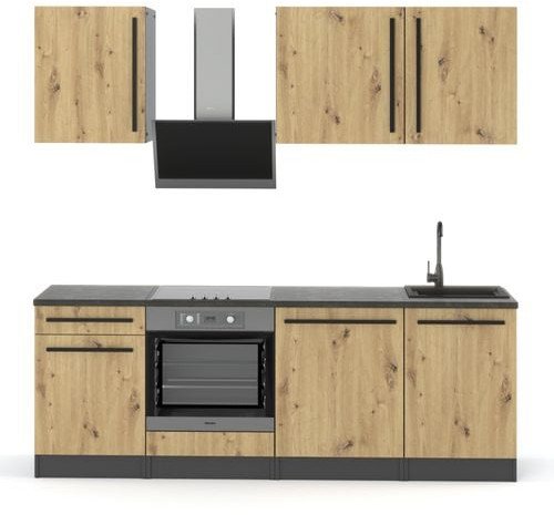 Meble Kuchenne Premium Agata 2.2m to doskonałe połączenie nowoczesnego stylu oraz funkcjonalności, które harmonijnie wkomponuje się w różnorodne aranżacje wnętrz. Elegancki, matowy szary korpus oraz fronty w odcieniu dębu Artisan wprowadzają do kuchni ciepło i ponadczasowy charakter, co czyni ten zestaw idealnym wyborem dla osób, które cenią sobie estetykę oraz praktyczność.