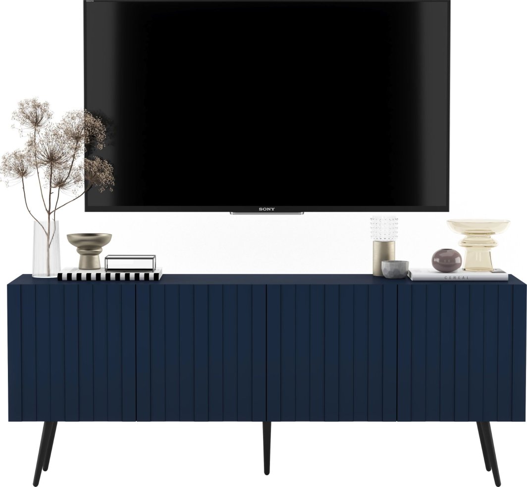 Meble Lindner Meble Lindner Komoda RTV Glamour Szafka RTV Glamour Granatowa 150 cm Ryflowane fronty Nogi Czarne Metalowe