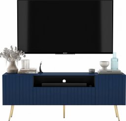 Meble Lindner Meble Lindner Loft Szafka RTV Granatowy Mat Nowoczesna Komoda RTV Glamour 150 cm Ryflowane fronty Nogi Złote Metalowe