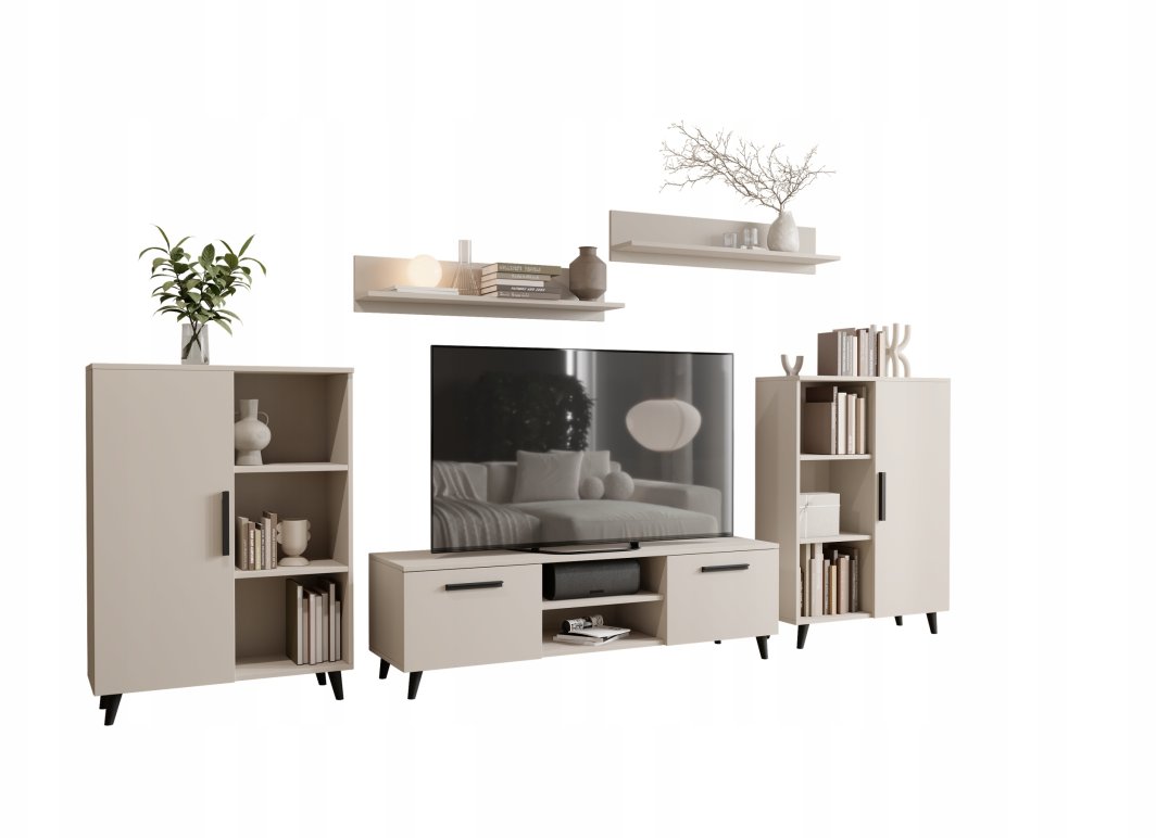 Meblościanka Oslo 2 kaszmir/czarny zestaw mebli RTV do salonu pokoju