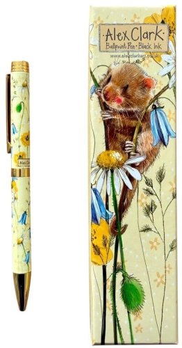 Przepiękny długopis z kolorowym wzorem Alex Clark. Łatwo obracana stalówka pozwala na płynne rozpoczęcie pisania. Posiada wkład z czarnym atramentem. Długopis wykończony jest złotem oraz zapakowany jest w ilustrowane, pasujące wzorem pudełko. Rozmiar długopisu: 140 mm x 10 mm.