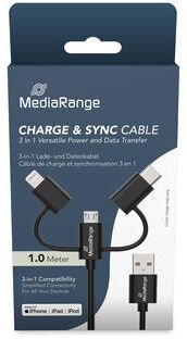 MediaRange 3-in-1 kabel micro USB USB-C i Lightning sw