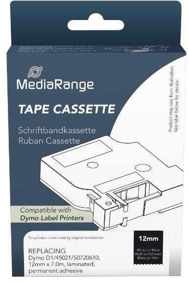 Taśma MediaRange MRDY45021 jest w pełni kompatybilna z modelami drukarek etykiet Dymo D1, w tym Dymo D1/45021 oraz S0720610. Dzięki temu użytkownicy mogą być pewni, że produkt idealnie wpasuje się w ich urządzenia, zapewniając bezproblemowe działanie oraz wysoką jakość wydruków.