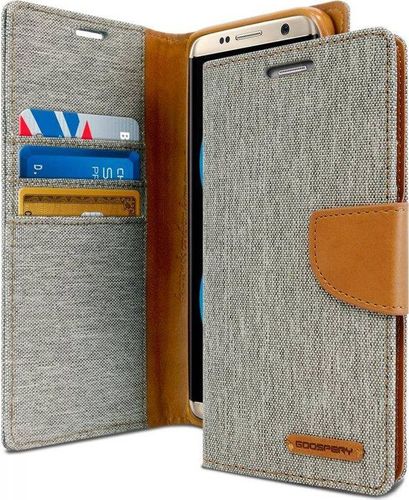 Mercury Mercury Canvas Diary - Etui Samsung Galaxy S8+ z kieszeniami na karty + stand up (szary/camel)